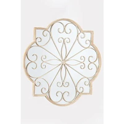 Large Metal Rustic Rose Petal shaped Garden Outdoor Mirror Cream 90cm X