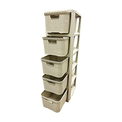 Featuring five large draws the rattan cream draw is perfect if you are wanting extra storage in your home You can store a range of items from clothing, documents and toys Manufactured from strong durable plastic, sturdy enough to hold a rang of items The modular draws can be swapped out, rearranged and remodelled Easy to wipe clean and maintain