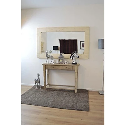 Large Natural White Solid Wood Wall Dressing Mirror 6Ft X 3Ft (183cm 91cm)