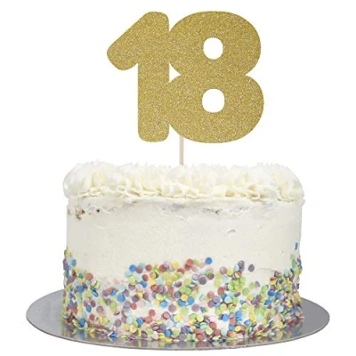 Large Number 18 Glitter Cake Topper (Gold Glitter)