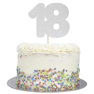 Large Number 18 Glitter Cake Topper (Silver Glitter)