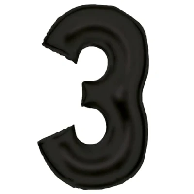 Large Number 3 Silk Lustre Black Foil Balloon N34 Packed 86 cm
