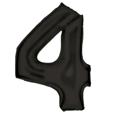 Large Number 4 Silk Lustre Black Foil Balloon N34 Packed 86 cm