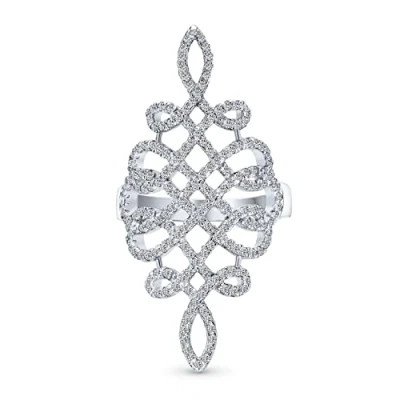 Large Pave Cubic Zirconia Romantic Art Deco Vintage Style Elegant Full Finger Armor CZ Statement Swirl Infinity Ring For Women Teen.925 Sterling Silver