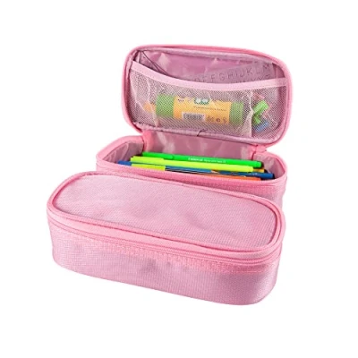 Pink large capacity pencil case allowing you to store your favourite stationery items Includes a mesh compartment inside the lid to separate different items Made of strong, durable material The universal design makes this suitable for school and work purposes Multifunctional case to adjust to everyone's needs