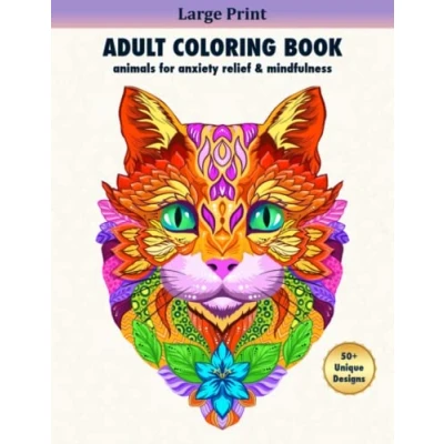 Large Print Adult Coloring Book: Animals for Anxiety Relief & Mindfulness: Zen Book Adults Stress Relaxation: Relaxing Designs with Mandala Floral Patterns