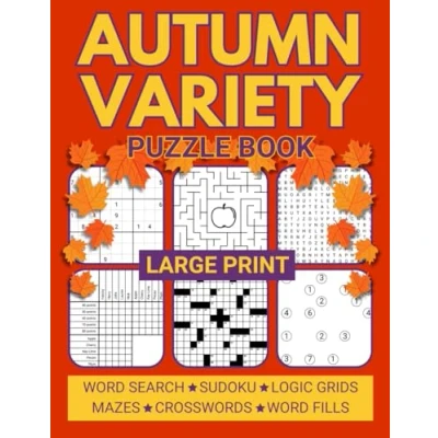 Large Print Autumn Variety Puzzle Book: Relaxing Mixed Puzzles for Adults Including Sudoku, Crosswords, Word Searches, and Logic Grids