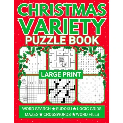 Large Print Christmas Variety Puzzle Book: Relaxing Mixed Puzzles for Adults Including Sudoku, Crosswords, Word Searches, and Logic Grids