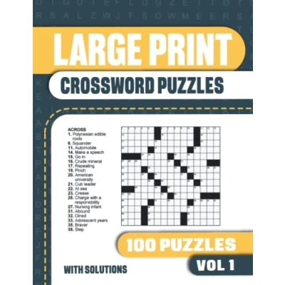 Large Print Crossword Puzzles: Book with 100 Crosswords Puzzles Easy to Read for Adults and Seniors Vol 1 (Large Adults)