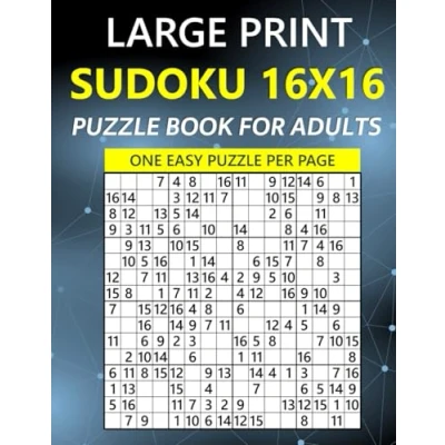 Large Print Easy Sudoku 16x16 Puzzle Book for Adults One Per Page: 100 Hexadoku Puzzles with Solutions Fun and Brain Exercise