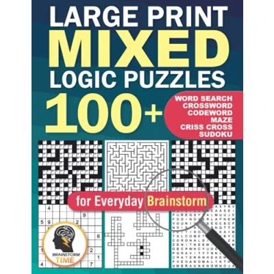 Large Print Mixed Logic Puzzles: 100+ Word Search, Crossword, Codeword, Maze, Criss Cross and Sudoku for Everyday (Puzzles adults)