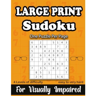 Large Print Sudoku for Visually Impaired: Relaxation and Entertainment Adults seniors, 4 Levels of Difficulty (Easy, Medium, Hard, Very Hard), ... One Puzzle Per Page, With Full Solutions