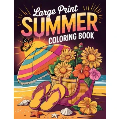 Large Print Summer Coloring Book: 50+ Simple, Easy, and Fun Themed Pages for Adults Seniors with Designs Stress Relief Relaxation