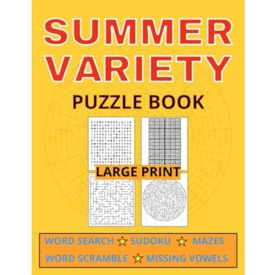 Large Print Summer Variety Puzzle Book: Relaxing Mixed Puzzles for Adults Including Sudoku, Mazes, Word Searches, scramble, Missing Vowels