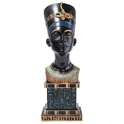 Nefertiti bust material: resin Nefertiti bust size: 34 x 12 x 9.5 cm. Nefertititi bust colour: dominant black. Egyptian decoration - gift idea This magnificent bust, represents the Egyptian Queen Nefertititi, on a base covered with Egyptian hieroglyphs. The dominant colour of this Nefertiti bust is black, with colors for the ornamentation part of the base and bust. This bust is a true tribute to Nefertititi, the famous Egyptian queen, who has always been recognized for its character and beauty. This Egyptian bust is a very decorative statue for the home, it is also a gift idea for friends sensitive to Egyptian history and especially to one of these most famous queens, Nefertiti