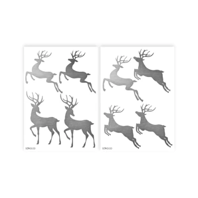 Large Silver Reindeer Silhouettes Wall Decals, Christmas Decoration, Display Shop Window Stickers, Gift Packing