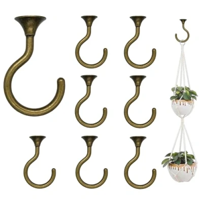 Large Swag Ceiling Hooks Heavy Duty Hook with Hardware for Hanging Plants Installation Cavity Wall Fixing (8 Sets, Antique Brass)