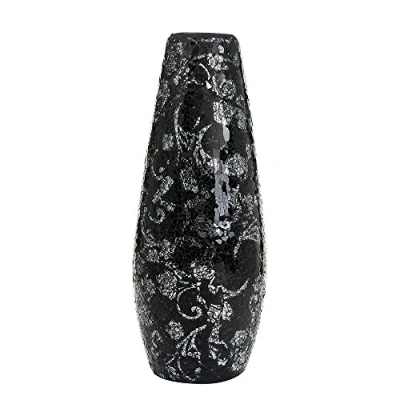 Large Tall Vase 18" 40cm Vases for Flowers Handmade Decorative Mosaic Glitter Sparkled Glass gift present (Large Black Rose)