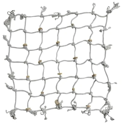 Large White Cargo Net With Wooden Blocks Bird Cage Accessory Climbing Toy