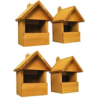 General description These open fronted nest boxes are a healthy size and are ideal for most garden birds, offering 1.5cm thick wooden walls for insulation. Perfect for Robins in particular, these birdhouses come in a great value pack of four, allowing you to position them at different vantage points. During the colder months, providing shelter for our garden visitors is essential, and these sturdy bird boxes are a perfect welcome for our feathered friends. Technical specifications Dimensions: 29cm x 20cm x 17cm Opening size: 13cm x 7cm Wall thickness: 1.5cm Usage It is recommended that you site robin nest boxes no more than 1 - 2 metres high. Open fronted nest boxes are preferred by not only Robins but also Wrens and Pied Wagtails.