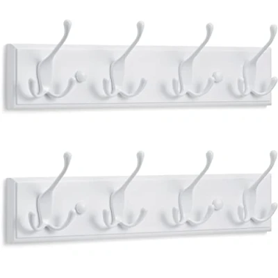 LARHN White Coat Hooks Wall Mounted Rack (2 Pack) 4 Triple for 42 cm All Fixings Included Quick & Easy Installation