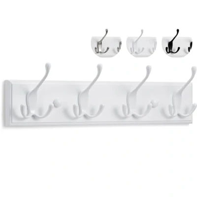 LARHN White Coat Hooks Wall Mounted Rack 4 Triple for 42 cm All Fixings Included Quick & Easy Installation