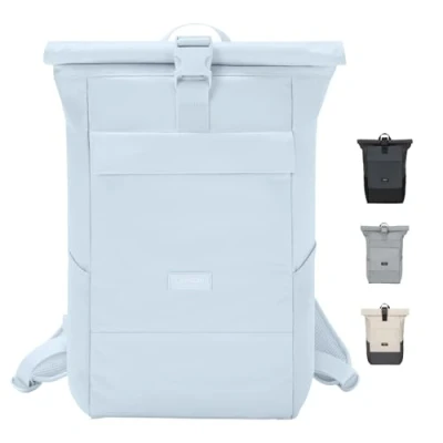 Larkson Roll Top Backpack Women & Men Light Blue No 4 Rucksack for University, School, Office College Laptop Bag 16 Inches Water Repellent