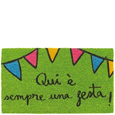 Laroom Doormat Qui è Sempre Un Festa, Jute & Non Slip Base, Green, 40 x 70 1.8 cm