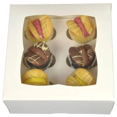 PREMIUM Ultra White Windowed Mini Cupcake Boxes for 6 Cup Cakes & inserts SUPERIOR QUALITY - Made from ULTRA White cardboard material, giving a clean, bright & vibrant finish. The boxes are safe, sturdy, non-toxic, compact, durable, lightweight to keep your cupcake creations safe and secure at all times! CRYSTAL-CLEAR WINDOW - Each box features a crystal clear transparent window to allow you to showcase your bake creations elegantly while still keeping them secure in the box. Allow your beautifully decorated cupcakes / muffins be the star of any show! REMOVABLE INSERTS - Each box comes with a fully removable insert to securely hold 6 Mini cupcakes. Each hole in the insert measures approx 3.5cm in diameter which will ensure that your bakes are kept secure during transport. With the inserts being removable, you can choose to remove the inserts if you would like to allow for larger cakes to fit inside the box. VALUE PACKS - Choose from a pack of 1, 2, 5, 10 or 25. Each box measures 15.2cm x 15.2cm x 7.6cm (6" x 6" x 3"), which give you plenty of space for your baking creations without taking too much of your space.