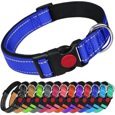 LARRYROO Reflective Dog Nylon Collar Slide Lock Safety Buckle Fully Adjustable Soft Neoprene Padding (Royal Blue, Small (25cm 40cm Neck))