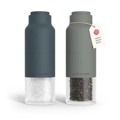 LARS NYSØM Salt and Pepper Grinder Set Stainless Steel with Adjustable I Bottle Design Spice Mills Manual (Blue/Gray)