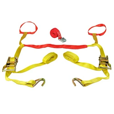 Amazon2 tensioning straps (loops, handlebar / tank saver), 1300kg, with ratchet and S-hooks, each 3.50 m long 1 strap with wedge lock, 250 kg approx 2.5 mx 25 mm; Double lashing capacity: 1300 kg Indispensable are on a trailer and tie-down brackets to the Lashing troughs Rigging Bar and diverse user approved tension belts