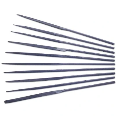 10 file profiles: 2 x round,3 x half round, 2 x triangular, 1 x flat, 1 x flat with taper, 1 x square profile Length: 140mm Ideal for precision work