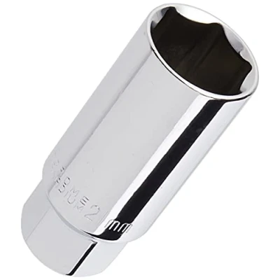 Size: 21mm single Hex (6pt) x 3/8"D x 55.5mm long. Outside diameter: 22mm; inside depth: 26.2mm. Fitted with rubber insert to protect and hold the spark plug. Manufactured from chrome vanadium. Included as part of a socket rack comprising 70 mixed sockets, please see Laser Part No. 1161.