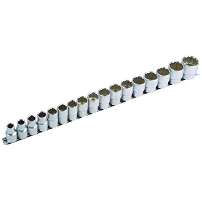 Socket sizes: 10, 11, 12, 13, 14, 15, 16, 17, 18, 19, 20, 21, 22, 23, 24, 27, 30 mm Bi-Hex (12pt) x 40 mm long (27 mm x 42 mm long, 30 mm x 44 mm long) Supplied on a socket rail 1/2 InchD deep set of sockets available - please see Laser Part No 3660