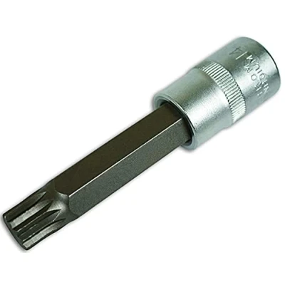Applications: ball joints on Volkswagen LT, Transporter, Touran and rear caliper bolt on Passat and Audi A3 Size: 1/2 InchD x 100 mm long - M14 spline Socket manufactured from chrome vanadium; bit from silicon steel