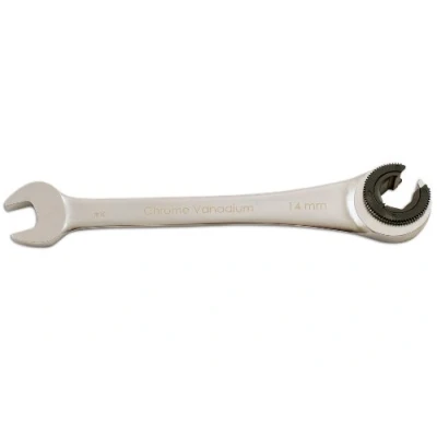 Size: 14mm x 190mm long Can be used whenever a standard ratchet ring spanner is used Manufactured from chrome vanadium with satin finish