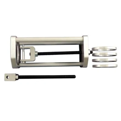 Motorcycle coil spring compressor manufactured from Aluminium for strength and lightness Supplied with 4 adaptors: 60mm, 66mm, 72mm, 75mm for different size springs Complete with eyelet and clevis adaptor Replacement threaded bar available - please see Laser Part No 2610