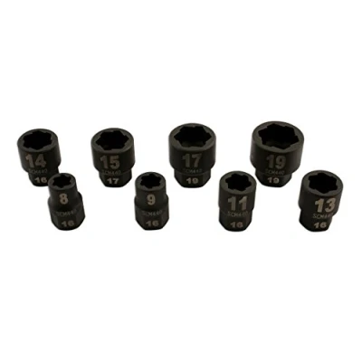 Special profile grips damaged or rounded nuts and bolts Sizes: 8/9/11/13/14/15/17/19mm Manufactured from Chrome Molybdenum scm440 with Manganese Phosphate Supplied in blow mould case for storage Consumable