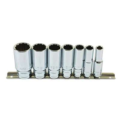 Deep whitworth socket set 3/8"D Contents: 1/8, 3/16, 1/4, 5/16, 3/8, 7/16, 1/2 Whitworth Manufactured from Chrome Vanadium Supplied with a socket rail Application: Classic British cars