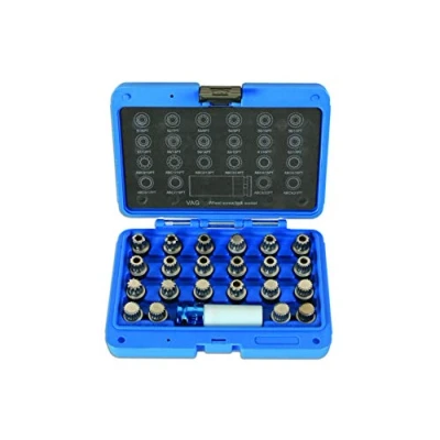 Applications: pre 2010 'non clover leaf' style locking wheel nuts to fit Polo, Beetle, Golf, Jetta, Scirocco, Passat, Sharan, Touran, Tiguan Equivalent to OEM T10101 and T40004, combined in one kit Includes: 22 x locking wheel nut keys and 1 x 17mm wheel nut drive socket