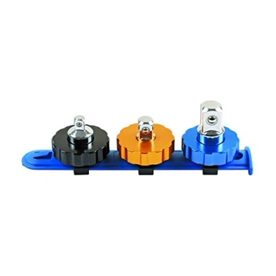 3 x adaptors: 1/2"D (F) to 3/8"D (M), 1/4"D (F) to 3/8"D (M), 3/8"D (F) to 1/4"D (M). Colour coded: Black, Gold & Blue. Supplied on a socket rail. Manufactured from chrome vanadium with aluminium spinner disc., Manufacturer: The Tool Connection Ltd