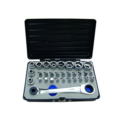 10 x 1/4"D sockets x single Hex (6pt): 4, 5, 6, 7, 8, 9, 10, 11, 12, 13mm Length: 18mm 20 x 18mm long bits: Phillips Ph1, Ph2 (x2), Ph3; Flat 4, 6mm; PzDrive Pz1, Pz2, Pz3; Hex 3, 4, 5, 6mm; Star* tamperproof T10H, T15H, T20H, T25H, T27H, T30H, T40H Driven by a 2-in-1 Gear wrench with 1/4"D and 11mm Hex drive Supplied in EVA foam in a stylish metal case, Weight: 0.88625829324 Pounds, Manufacturer: The Tool Connection Ltd