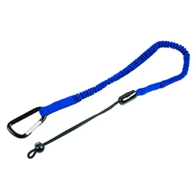 Safety tool lanyard with one aluminum hook Capacity 45 kg Extends to 120cm Supplied with 4 mm wire accessory for tools such as podgers with hole to fix lanyard Typical applications include production lines, working at height, machine assembly and maintenance Helps to reduce damage, downtime and accidents
