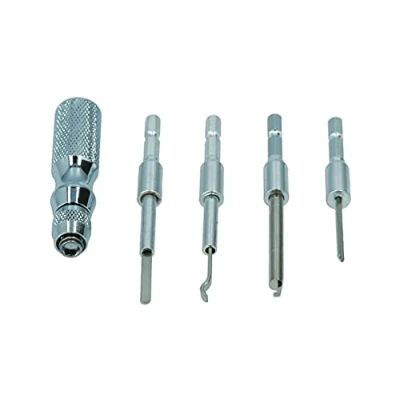 Terminal and connector release tool with 4 interchangeable tools 1 x Terminals locking plate release tool for male Supaseal, Deutsch male and female Ford connectors 1 x Deutsch terminals locking plate on female connectors 1 x Deutsch terminals release tool 1 x Terminals release tool on Ford and Supaseal