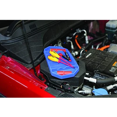 Overall size: 275 x 145 x 25 mm. 3 pockets (20 mm deep) to keep tools separate for easy access & 15 Hex bit holders (1/4 Inch). Manufactured from rubber material to prevent scratches & marking. Larger sizes available - please see Laser Part Nos. 8044 (medium) & 8045 (large). Set of 3 available - please see Laser Part No. 8051.