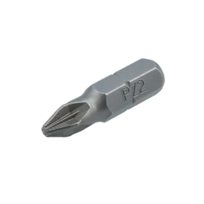 Specially designed cubic patterned anti-slip tip provides a stronger grip, preventing slippage & holds the screw securely. All bits one size: PzDrive Pz2. Length: 25mm, with 1/4"D shank. Manufactured from impact grade S2 steel with a sandblast finish. CUBIC = a non-slip pattern made up of tiny cubes.