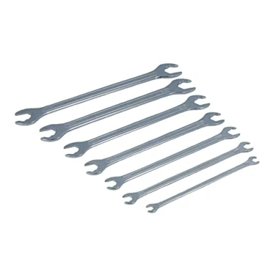Sizes: 6 x 7mm (2.4mm thick), 8 x 9mm (2.4mm thick), 10 x 11mm (2.4mm thick), 12 x 13mm (2.9mm thick), 14 x 15mm (2.9mm thick), 16 x 18mm (3.7mm thick), 17 x 19mm (3.8mm thick). Lengths: 148mm - 251mm. Open end ratcheting profile allows you to turn nuts & bolts without taking the wrench off the fastener. Manufactured from 65Mn carbon steel with a polished chrome finished. Presented in an EVA foam tray (34 x 164 x 279mm) convenient for user storage & limiting packaging waste.