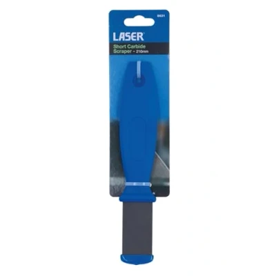 Extra-sharp blade for precise work, ideal for removing gaskets, carbon, rust & paint. Serrated blade for use on grooves, corners or edges on various surfaces. Blade width: 32mm; length: 60mm; total length: 210mm. Ergonomic handle & short shaft ideal for use in tight areas. An extra-long carbide scraper is also available, please see Laser Part No. 8393.