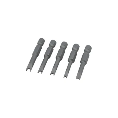 Suitable for use on tamper resistant U-profile/snake eye (2-hole) security fixings, typically used on electrical products. Sizes: U4, U5, U6, U8, U10. Bit length: 50mm, with 1/4" shank. Ideal for use with cordless screwdrivers fitted with a quick chuck, cordless drills & bit drivers. Manufactured from S2 silicon steel, with a magnetised tip. Supplied in a plastic storage case.